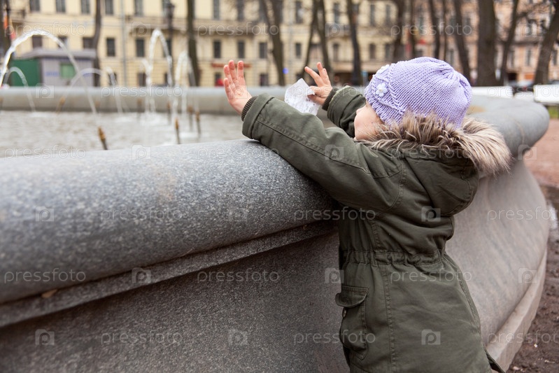 Маленький ребенок у фонтана