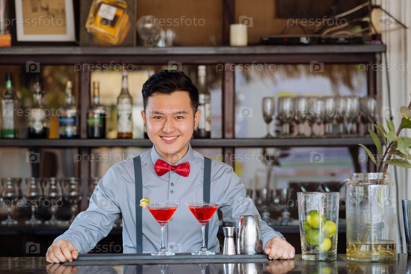 Улыбающийся азиатский бармен