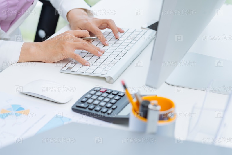 Женские руки на клавиатуре