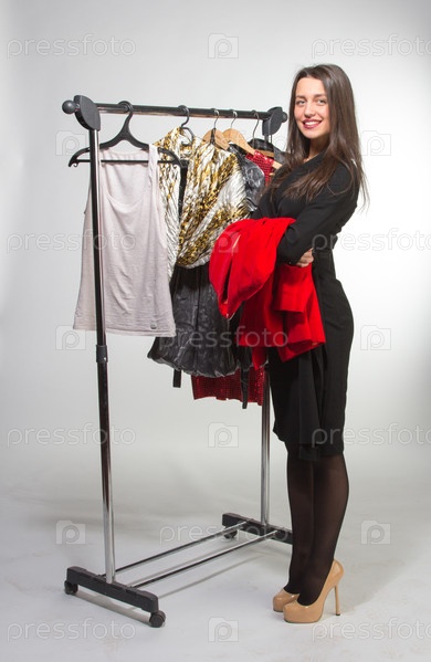 Женщина и стойка с одеждой