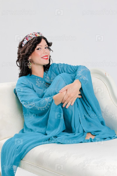 Красивая женщина позирует в студии