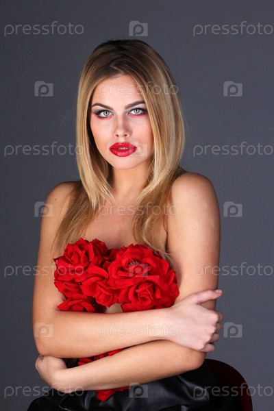 Красивая женщина позирует в студии