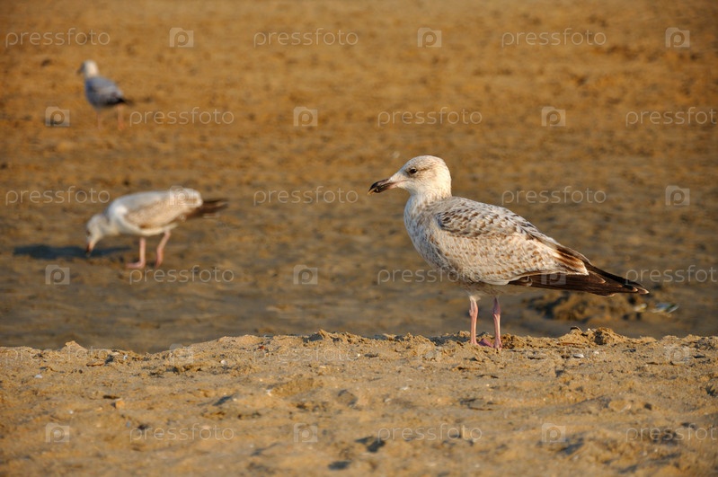Чайки на берегу Северного моря в Голландии