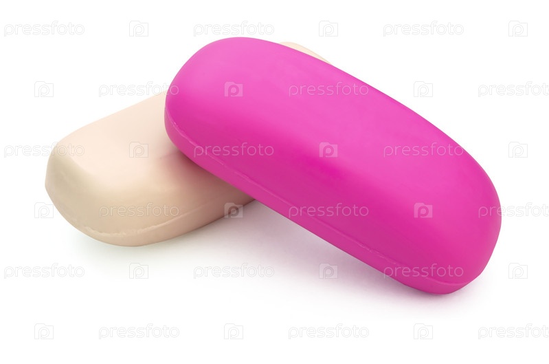 Два кусочка мыла на белом фоне