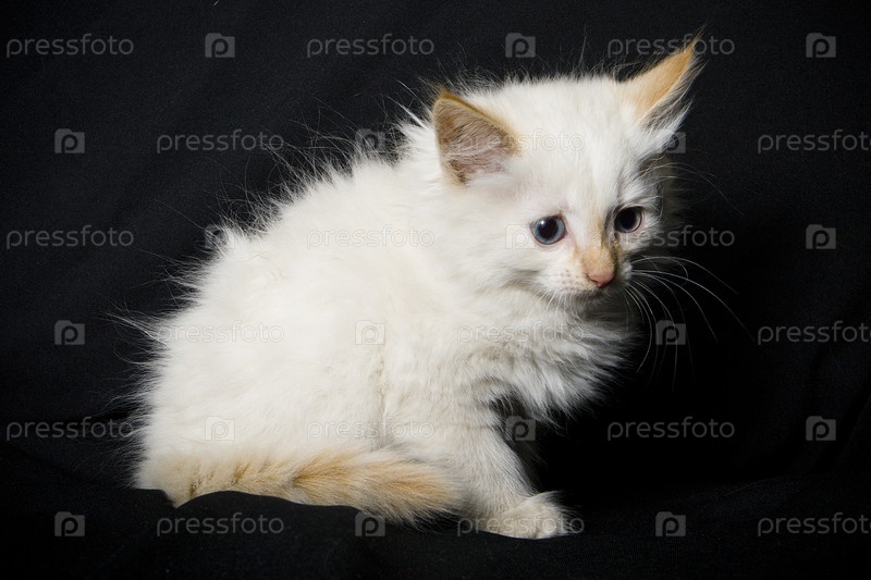 Белый котенок на черном фоне