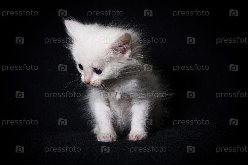 Белый котенок на черном фоне