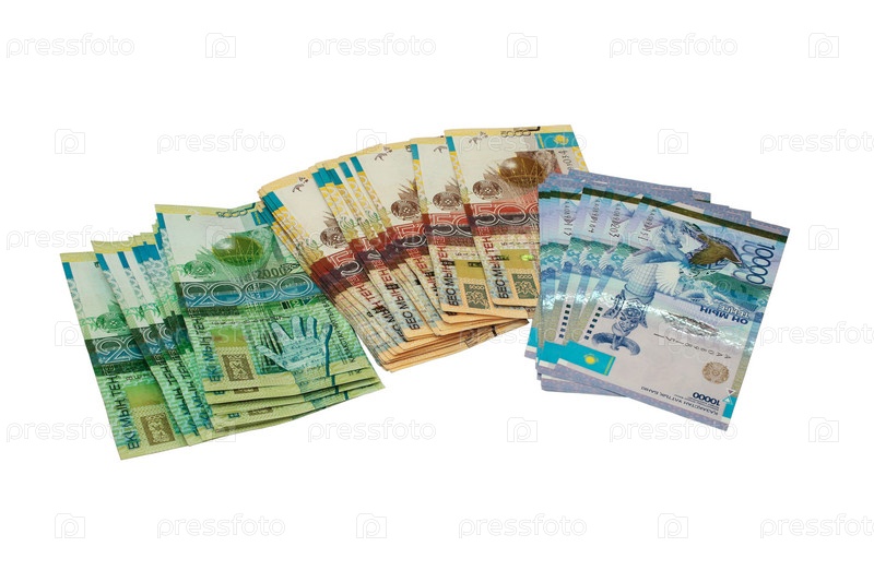 Деньги Республики Казахстан на белом фоне