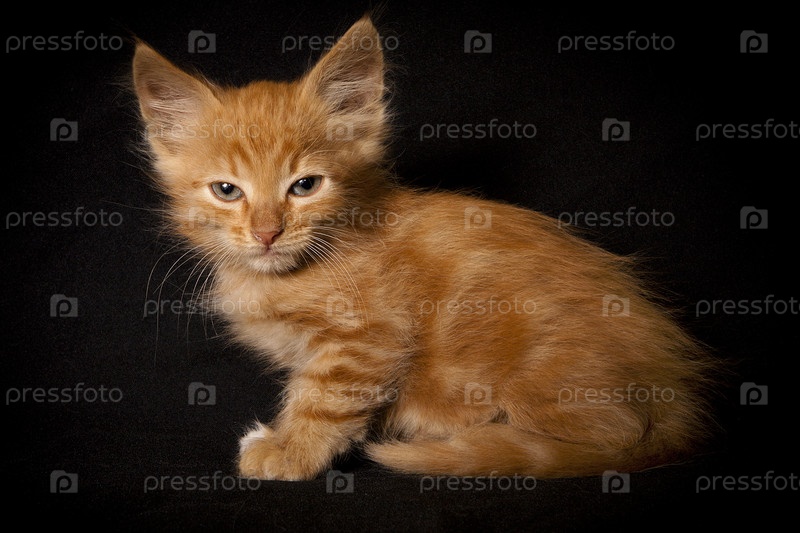 Рыжий котенок на черном фоне