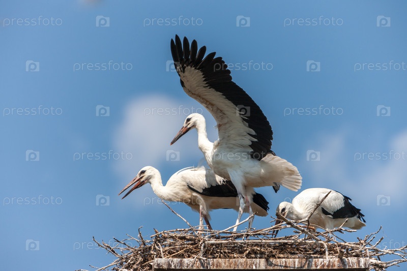 Белые аисты в гнезде