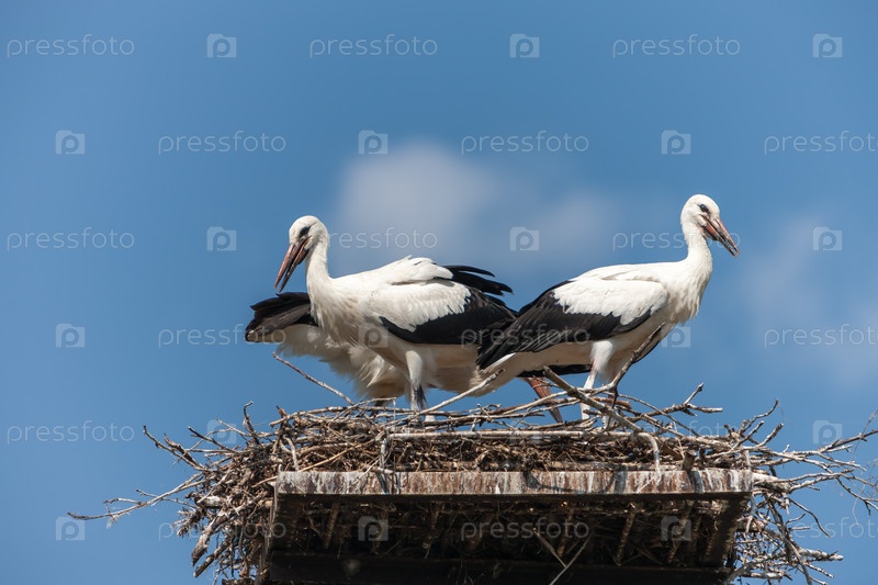 Белые аисты в гнезде