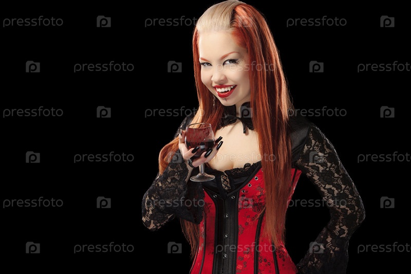 Рыжеволосая готическая девушка с бокалом