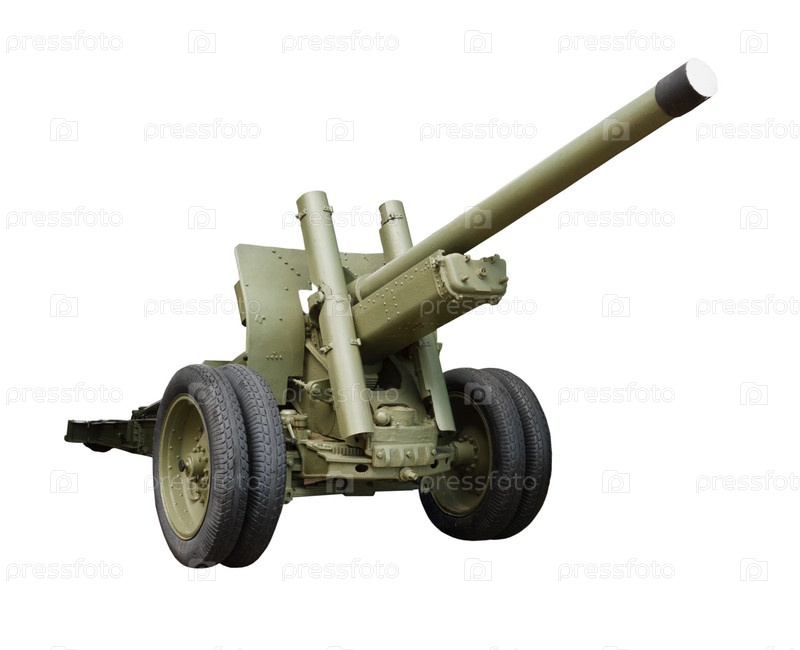 Артиллерийская пушка Второй мировой войны на белом фоне
