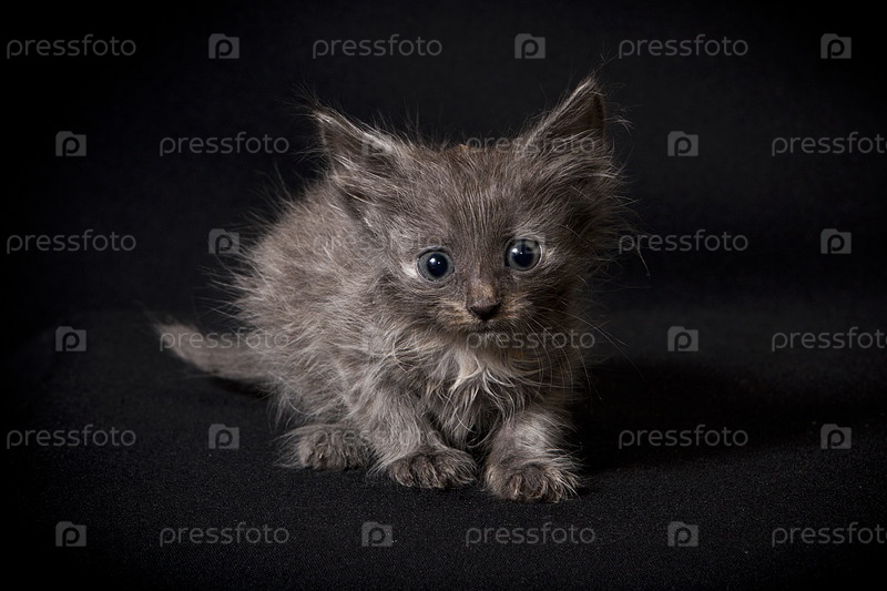 Дымчатый котенок на черном фоне