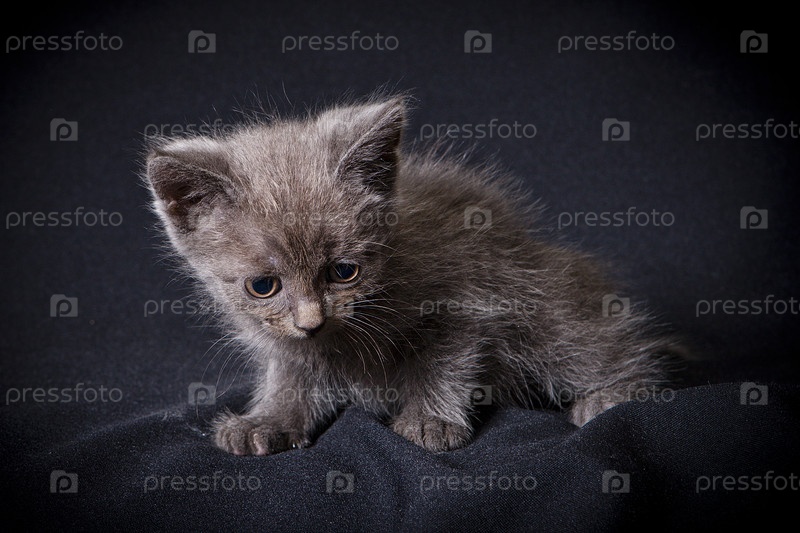Дымчатый котенок на черном фоне