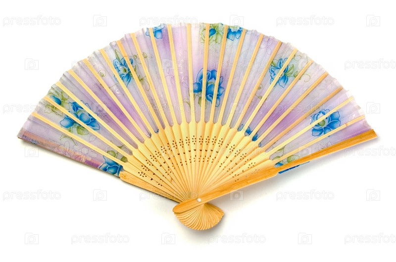 Азиатский шелковый веер на белом фоне