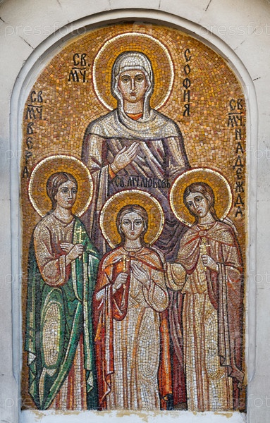 Икона с изображением Святой Софии и трех ее дочерей (Веры, Надежды и Любви) в православной церкви в Севастополе, Украина