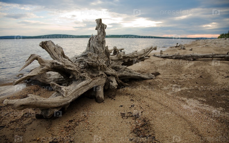 Побережье озера, древесина, мульдирующийся зажим