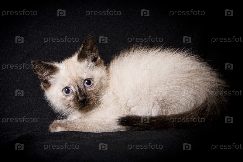Котенок сиамского окраса на черном фоне