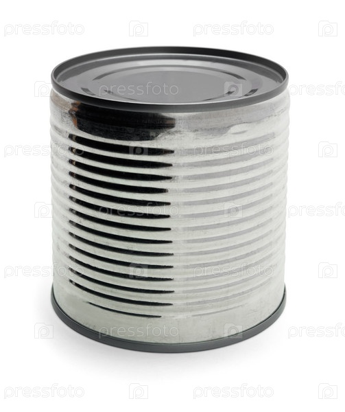 Консервная банка без этикетки на белом фоне