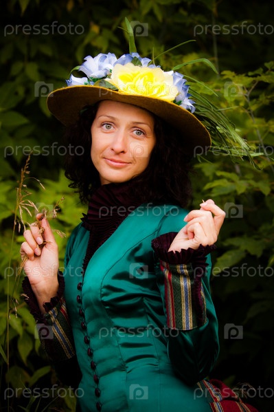 Красивая женщина в зеленом винтажном платье