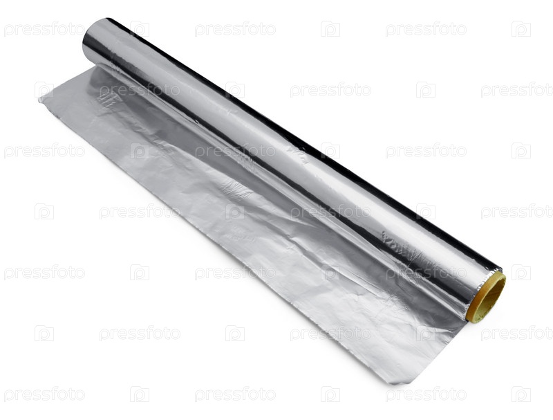 Рулон фольги для упаковки и приготовления пищи на белом фоне