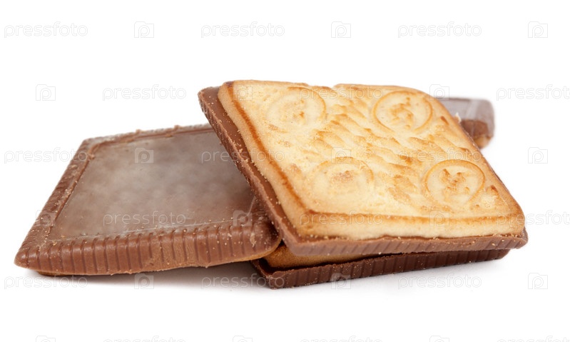 Печенье с шоколадом на белом фоне