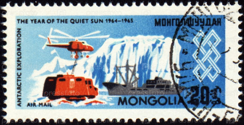 Почтовая марка Монголии с изображением научно-исследовательской экспедиции в Антарктике