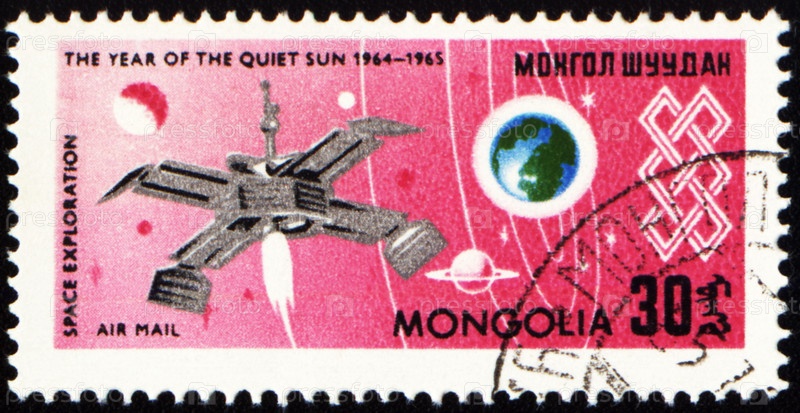 Почтовая марка Монголии с изображением космического корабля