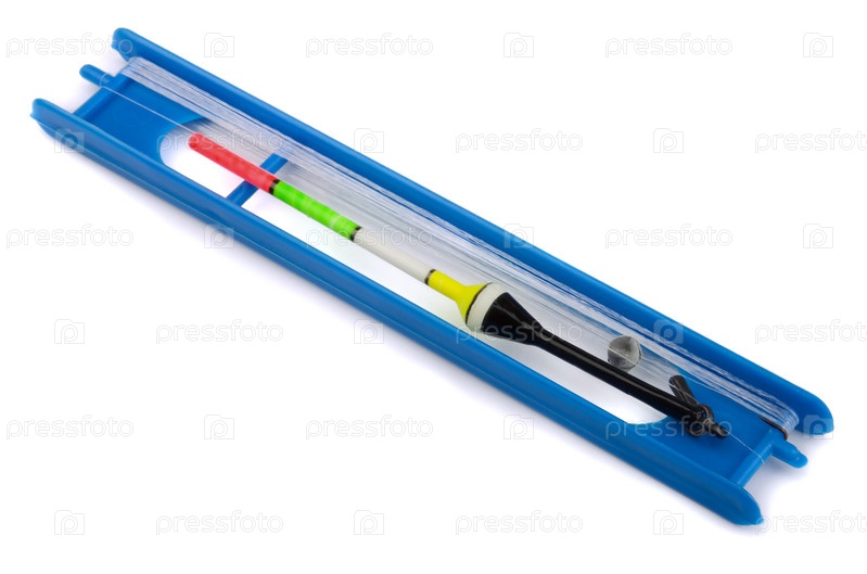 Комплект рыболовных принадлежностей на белом фоне
