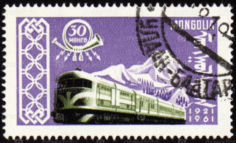 Почтовая марка Монголии с изображением поезда