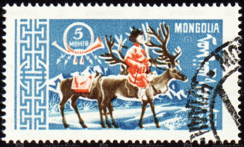 Почтовая марка Монголии с изображением оленей и оленевода