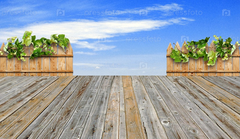 Деревянная терраса и голубое небо
