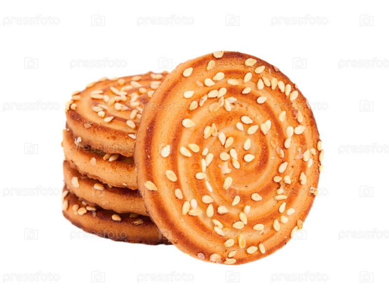 Печенье с кунжутом на белом фоне
