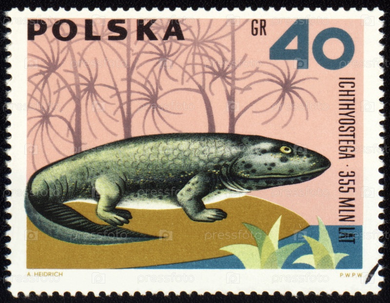 Почтовая марка Польшы с изображением ископаемого животного
