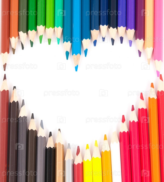 Набор цветных карандашей на белом фоне