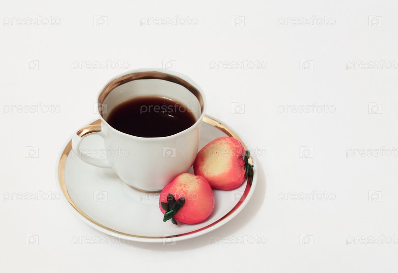 Чашка кофе и клубника из марципана