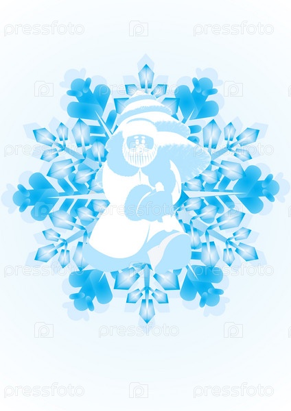 Дед Мороз на фоне голубой снежинки