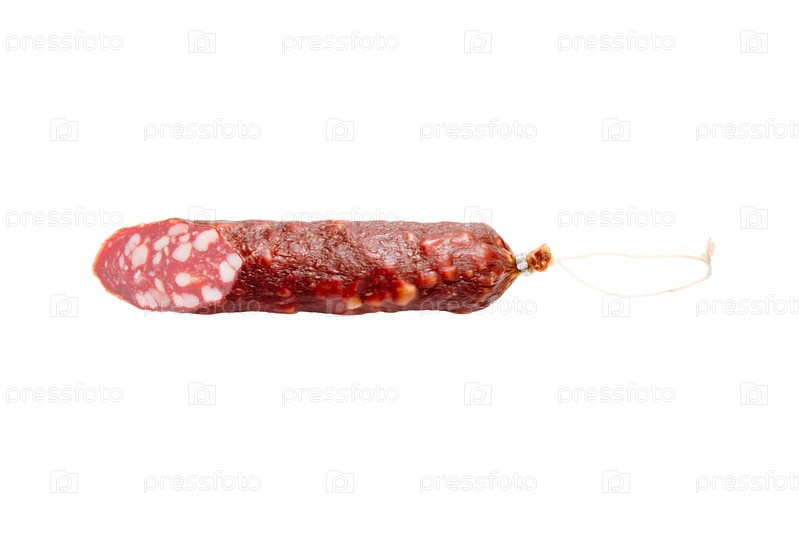Копченая колбаса на белом фоне