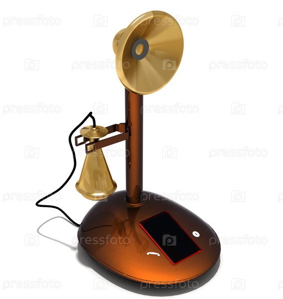 Старинный телефон с сенсорной панелью на белом фоне