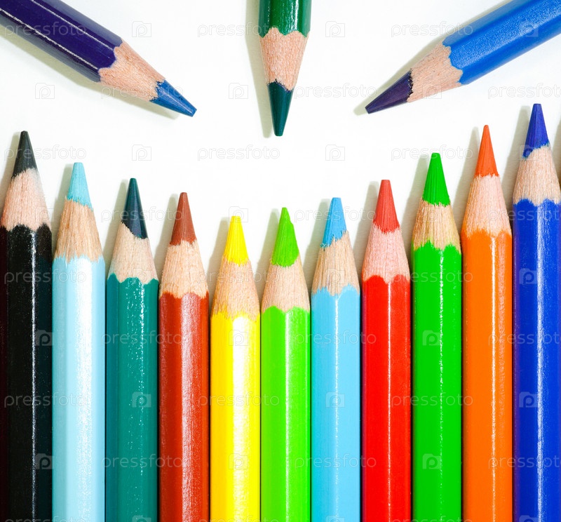 Цветные карандаши на белом фоне. Концепция оппозиции