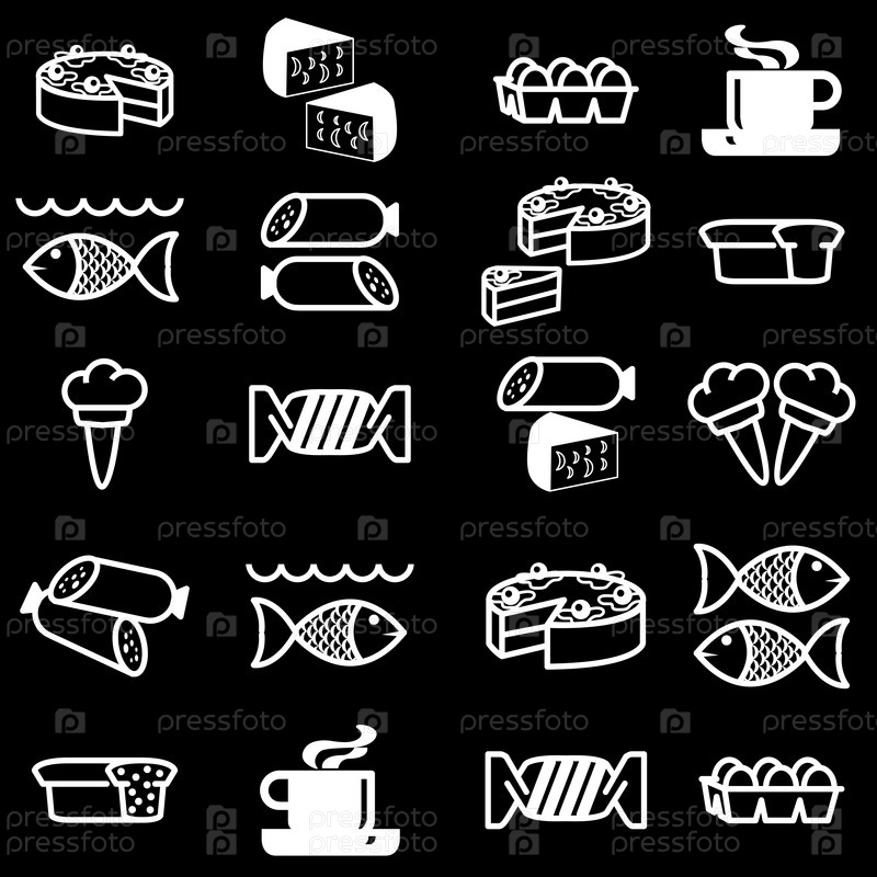 Набор векторных силуэтов на продовольственную тему, черно-белые иконки