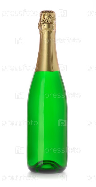 Закрытая бутылка шампанского без этикетки на белом фоне