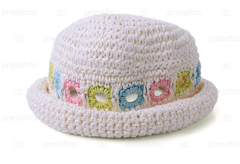Детская вязаная панама на белом фоне