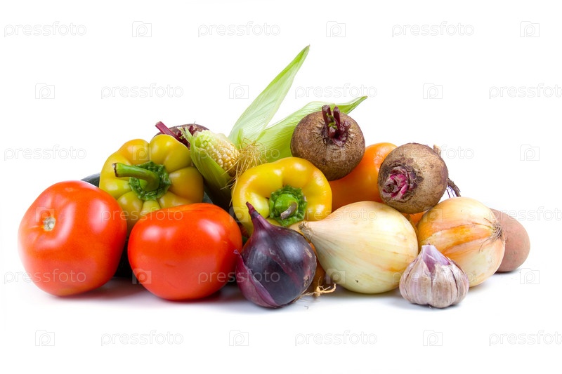 Свежие овощи на белом фоне