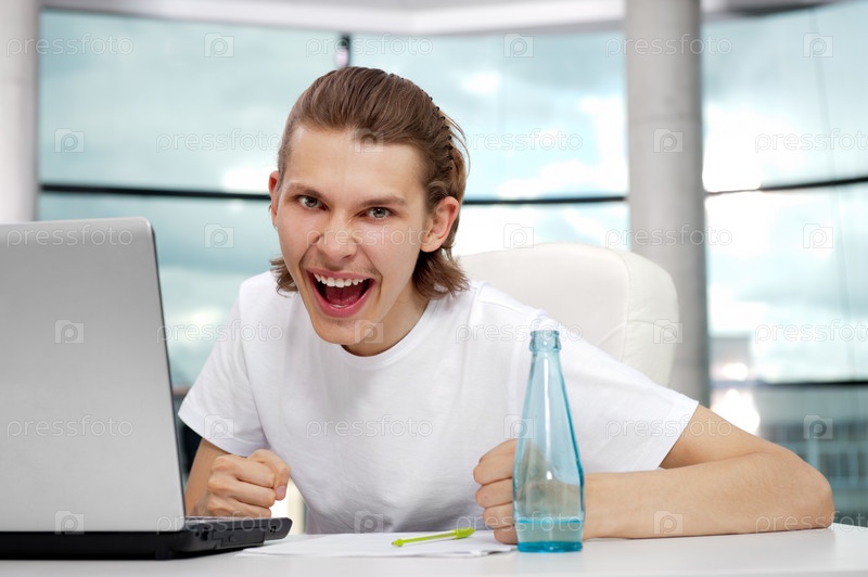 Эмоциональный парень на работе