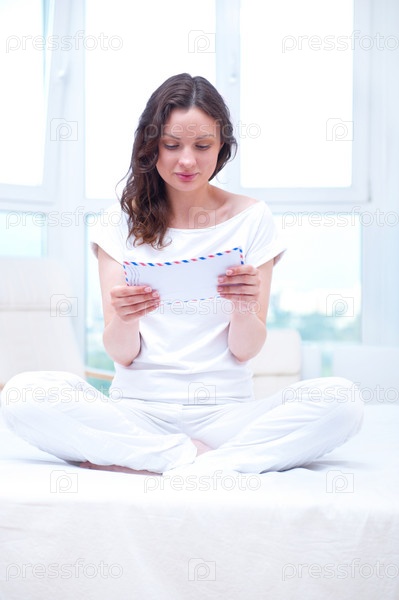 Молодая красивая женщина с конвертом в руках