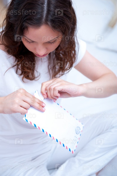 Молодая красивая женщина с конвертом в руках