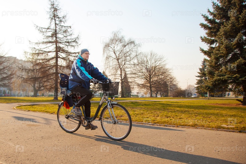 Мужчина едет на велосипеде