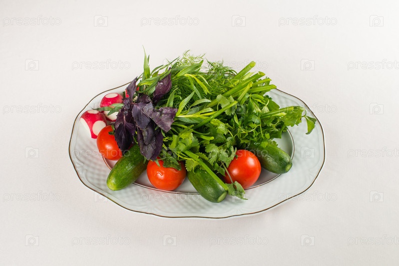Блюдо с закуской на белом фоне