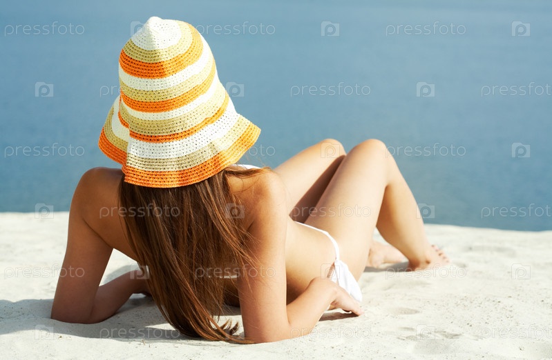 Симпатичная брюнетка на пляже